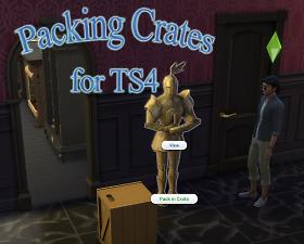 Чтобы положить определенный предмет в ящик, нужно нажать на этот предмет и выбрать "Pack in Crate" (Упаковать). Изначально нужно обязательно поставить ящик на участке, купить данный ящик можно за 150 симолеонов. После выбора действия "Упаковать", предмет автоматически переносится в ящик. После того, как вы завершите упаковку, ящик можно просто положить в инвентарь сима и переезжать.