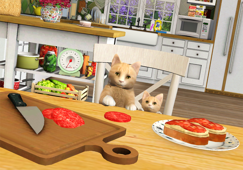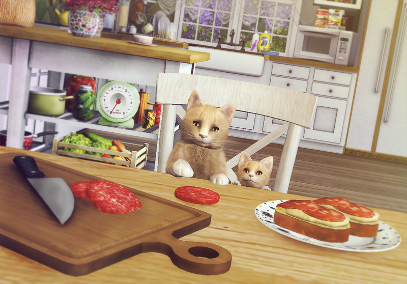 Умильный вышел арт. У котэ мордочки хитрющие и глазюки полные азарта. А вожделенный кусочек так рядом, только лапу протяни. Счастье под носом, если хозяйка полотенцем не огреет :лол2: