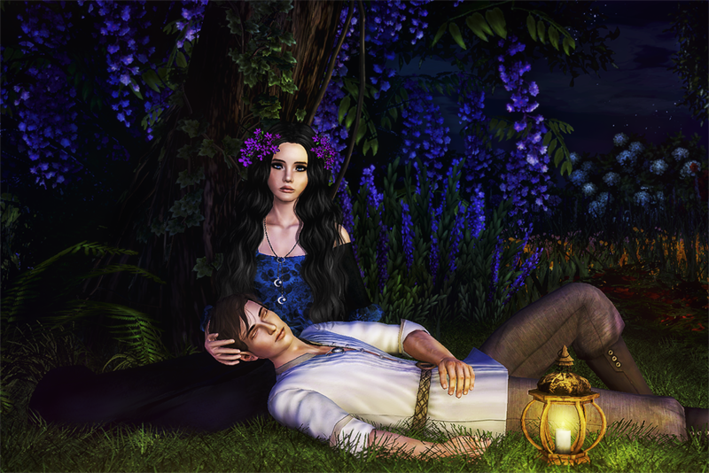 <Несмотря на отдых, её голос снова заставил мальчика погрузиться в неглубокий сон. История то и дело вторгалась в его разум, будто игла, за которой тянется шелковая нить. Его голова лежала у девочки на коленях, и она, продолжая рассказ, погладила его мягкие тёмные волосы – сначала робко, а затем с нарастающей нежностью.>