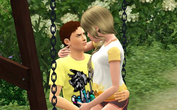 -Не... Попозже.. - ответила я, но не успев договорить, как Лонни подхватил меня и потащил в сторону качели, где на одних уже сидели и мило ворковали Самира и Боб. -Отпустиии!!! - заливаясь смехом прокричала Жасмин. -Отпусти же! Ну?!
