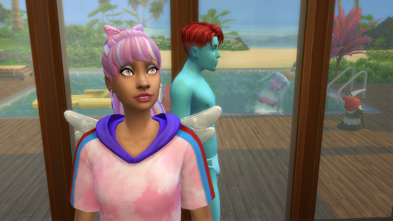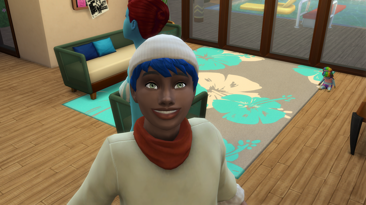 Девочка стала подростком, пока я играла за других. Я зашла в семью, чтобы оживить воображаемого друга, но он уже оживился без моей помощи. Мало того, что у него не было ни имени, ни фамилии и он считался бездомным, так у него еще и самая обычная внешность :злой:(кукла была разбойник или как ее, в шкуре). А че всмысле. Добавила его кодом в семью, думаю, может, какие-то особые действия появятся - нет, обычный сим. Из необычного - его никто не видит, кроме девочки, которая с ним дружила. Он даже сам себя не видит, когда я за него играю (см. панель) :рукалицо: