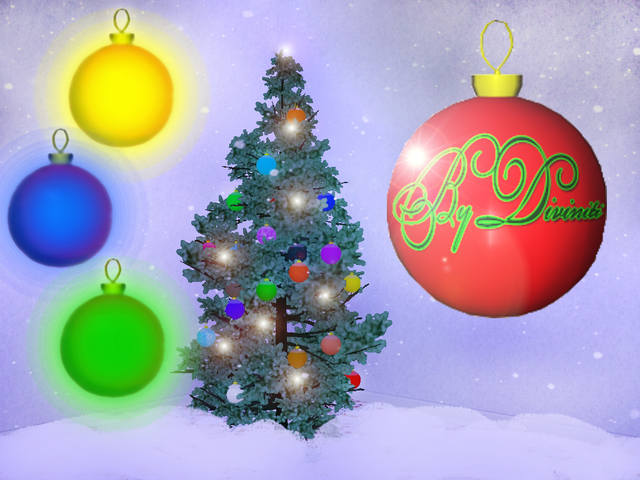 Декор для украшения новогодней елки, искать в картинах. Имеет две зоны перекраски: шар и (не знаю как оно называется) штучка сверху. Важно! Для размещения на дереве включать код MoveObjects on.
