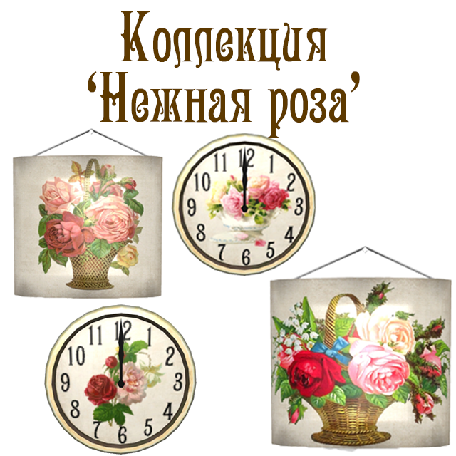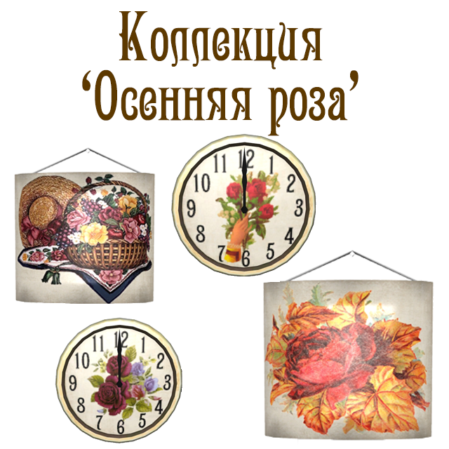 Набор из двух объектов: Часы (функциональные) и Картина. Перекраски подобраны в несколько тематических коллекций. У часов перекрашивается рамка, у картины - ремешок. Объекты искать в соответствующих разделах.