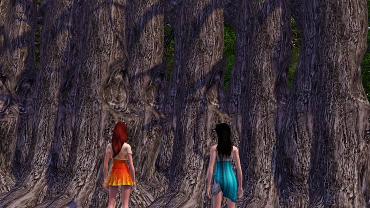 - Видишь деревья? Это врата. Вход в деревню. Она тщательно скрыта. Со всех сторон. Для злых магов там болото, которое тщательно скрывает деревню. В ней много всего, хоть она и маленькая. Сейчас, погоди…. – Кристи подошла к стволу, из которого росло второе дерево. Она прислонила руки к веткам. Те переменились в цвете, и стали голубыми. Затем ярко-рыжими. Вспыхнул некий поток, который прошел насквозь меня и Кристи. Отпустив руку, я подошла к ней. Двери стали медленно открываться. Вместо старой, захудалой деревушки я увидела огромный участок, с большим лесом и растительностью. У входа стояло два стража, которые дали пройти Кристи, но меня остановили:
