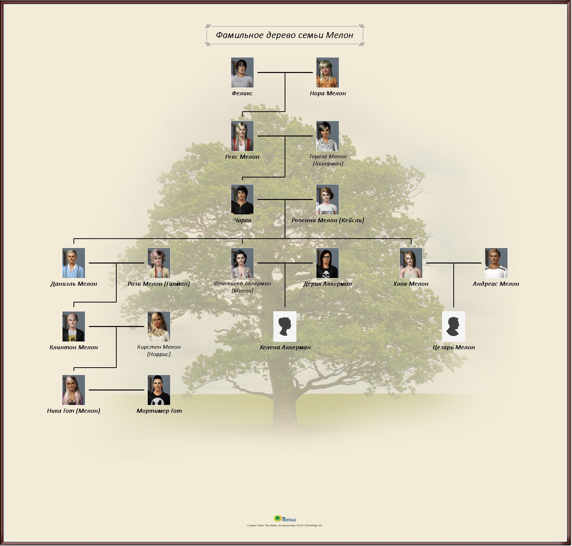 Сделать скриншот фамильного дерева можно с помощью клавиши PrintScreen (на ноутбуке ее нужно нажимать одновременно с клавишей Fn), после нажатия сворачивайте игру, заходите в Paint, правка > вставить > сохранить как... А также с помощью специальных программ, например, Fraps.