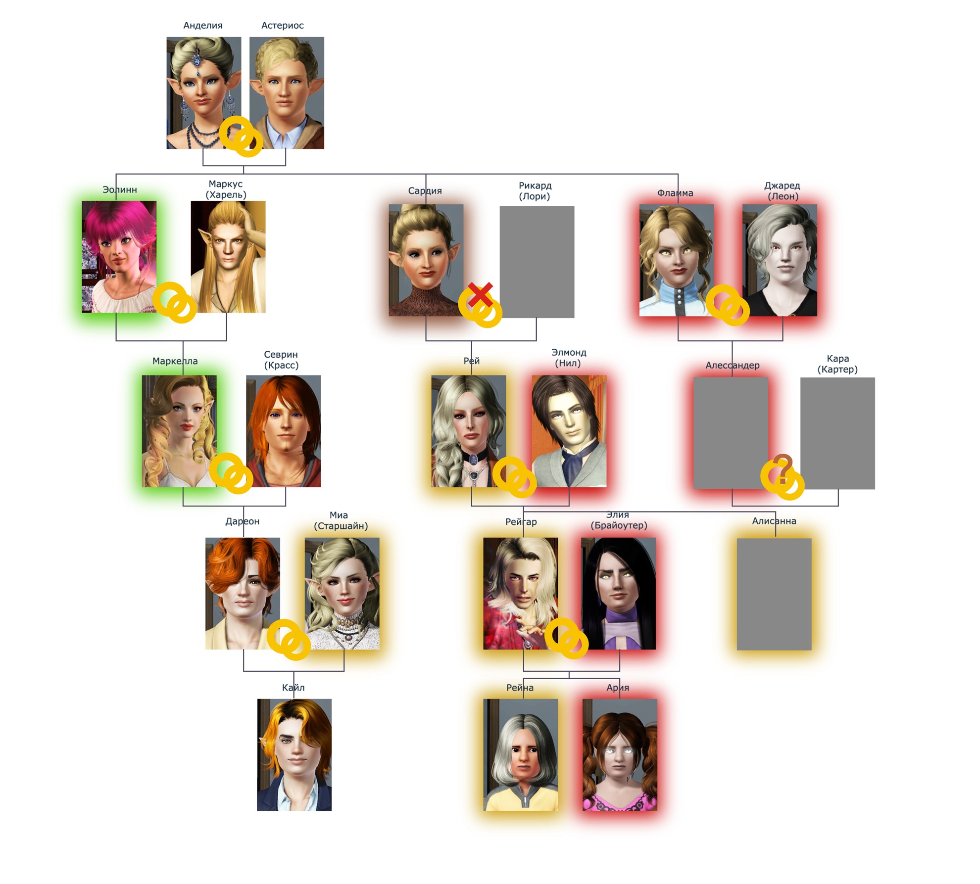 А я немного подкорректировала своё древо. Добавила новое поколение, да заодно отметила, кто какой расы)