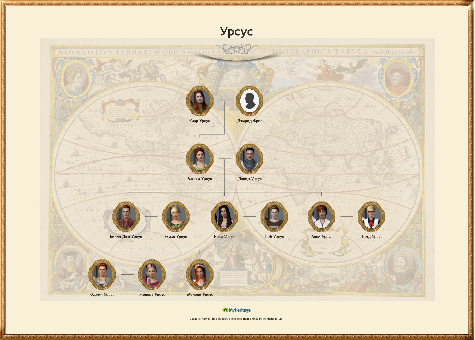 Я играю потомками стандартной симки Клэр, дерево можно посмотреть под спойлером