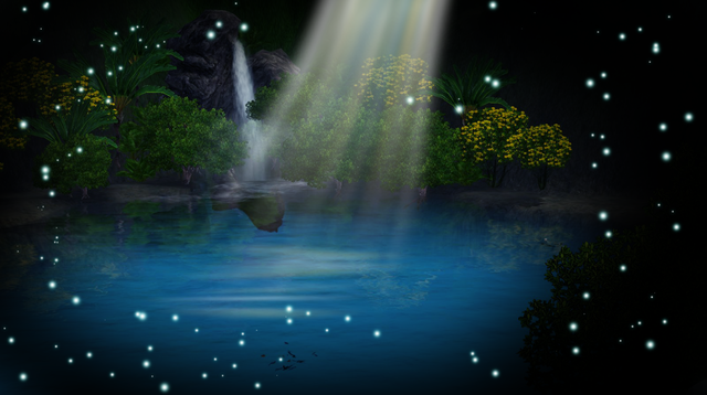 Про то, что посоветовала Милашка. Я согласен. Свет должен быть примерно такой, но, мне кажется, немного более тусклый и рассеянный, а то получается, что как из прожектора светят. И светлячки именно такие должны быть (но только я не знаю, почему Вика их только по краям сделала