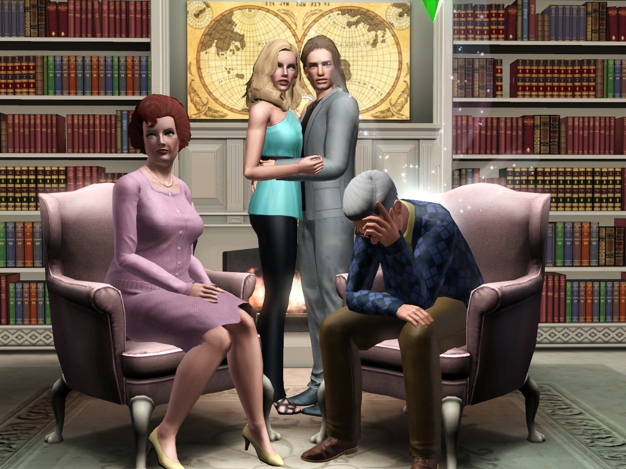 Прошу поправить волосы симке в районе лица. Сам скриншот нравится, но врезавшаяся в лицо прядь волос все портит