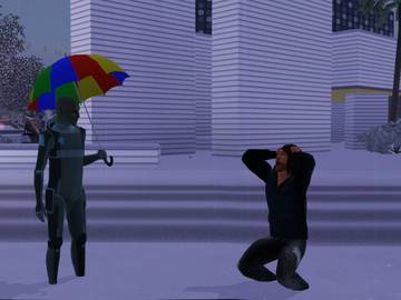 • Сим, разбуженный ночью таинственными звуками и вышедший на улицу, может быть похищен и взят в межгалактический полет. Никто точно не знает, что происходит там, но потерпевшие возвращаются домой с расплывчатыми воспоминаниями и обострившейся паранойей.