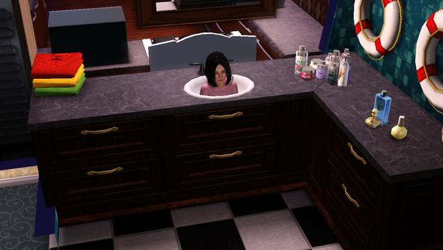 Упс! Дела еще круче. Раковина просто не чинится. Уже отправила разбираться с ней своего сима, полоска прогресса до конца доползла, а фонтанчик из крана так и продолжил бить. Придется потратиться на новую
