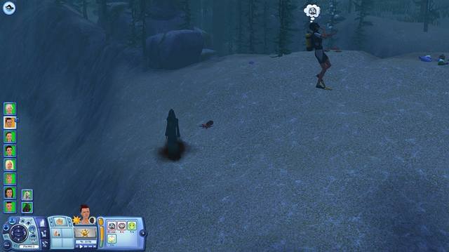 Один весьма странный момент случился при прохождении гробницы на рынке в Китае. Обычно жители и другие симы не заходят в комнаты, отмеченные как гробница (появляется мудлет), на общественных участках, но в этот раз дамочку было не удержать, уж, больно хотела помыть императорские хоромы