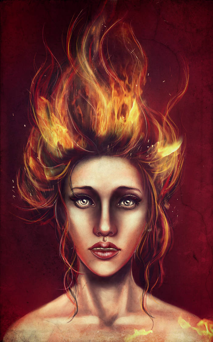вау очень горячо, очень сильная работа, волосы в огонь это нечто просто как ты красиво нарисовала и в глазах встревоженость такая..мне очень нравиться эта работа :))