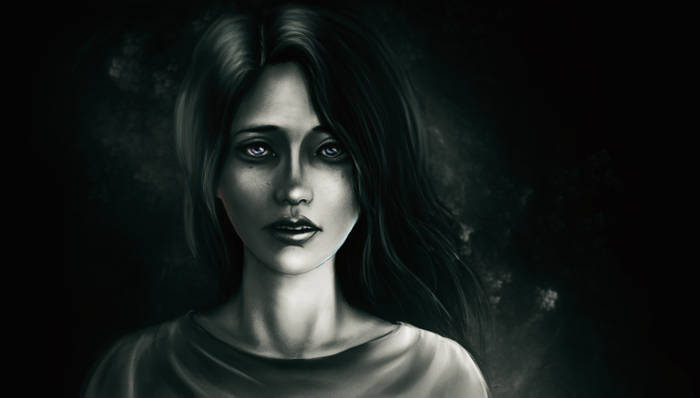 Очень красивая и трогательная работа. Очень рада, что ты обновила свой арт. Девушку даже жалко становится. Такое ощущение, что она оказалась в темном и мрачном месте и теперь не знает, как оттуда выбраться. Ей страшно.