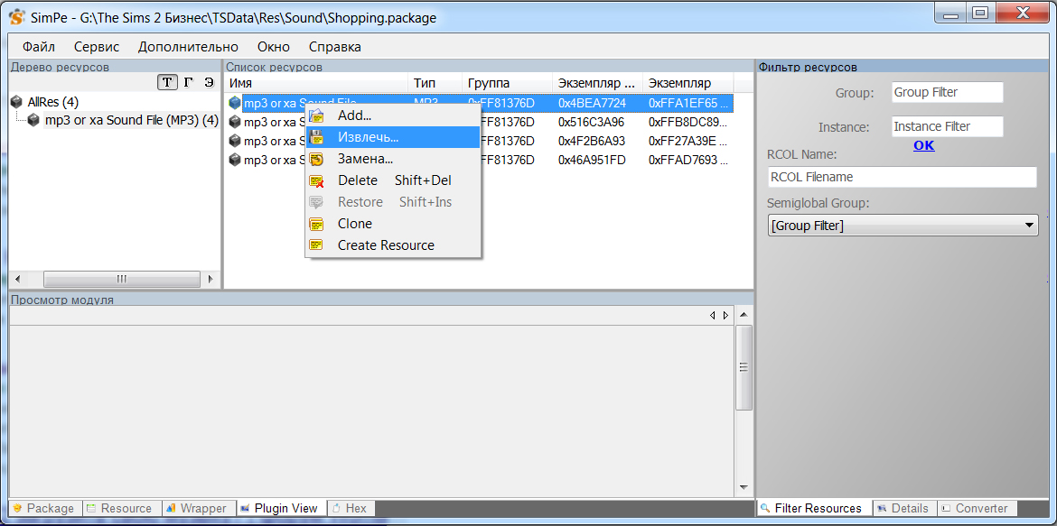 В нашем примере откроем музыку категории «Торговля» из аддона «Бизнес». Она находится в файле Shopping.package в папке Sound по пути (у вас путь к папке будет отличаться в зависимости от того, куда вы устанавливали игру): G: \The Sims 2 Бизнес\TSData\Res\Sound
