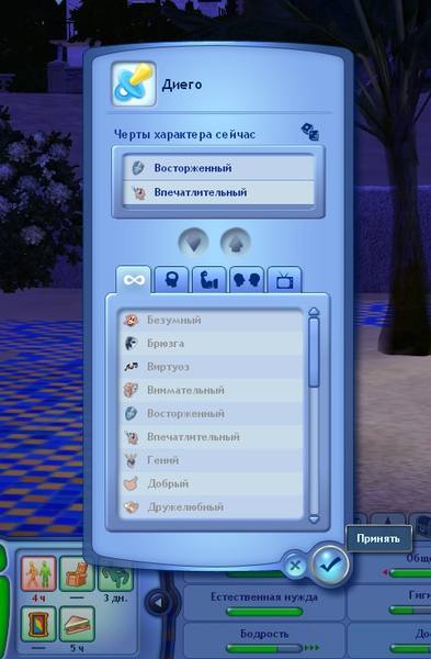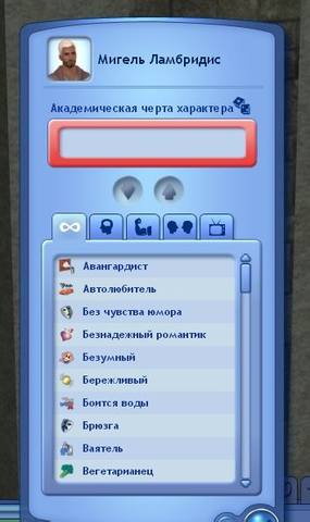 3. Для определения черты характера выберете соответствующую вашему персонажу возрастную категории в блоке "Черты характера The Sims 3".