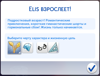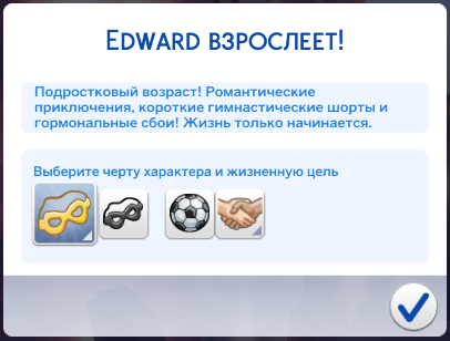 3. Для определения черты характера выберете соответствующую вашему персонажу возрастную категории в блоке "Черты характера The Sims 4".