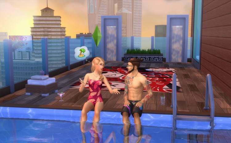 Добро пожаловать в Сан Мишуно! Как, вы уже живете в городе? Где, если не секрет? Ой. Надо же. В одной из этих квартир? Мы считаем, что ваши симы достойны лучшего! Пожалуйста, следуйте за нами, мы покажем вам последний этаж. Пентхаусы — это элитные квартиры в дополнении «The Sims 4 Жизнь в городе»*, которое выйдет в ноябре. Мы считаем, что вашим искушенным симам подойдут именно пентхаусы.