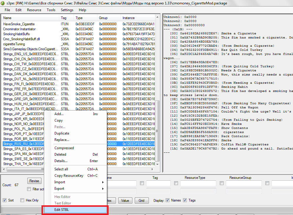 Он отвечает за русский язык. Открываем его. Для этого нажимаем по нему правой кнопкой мыши и выбираем Edit STBL.