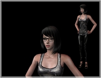 6. одежда, как у танцовщицы хип-хопа(свободная футболка, шырокие бриджи или штаны, кроссовки) если можно. темные цвета. можно просто черно-белую гамму