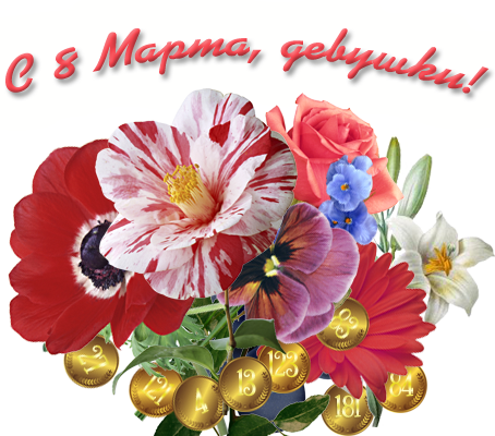 Поздравляю всех обитательниц нашего сайта с прекрасным весенним праздиком 8 Марта!Желаю всем отличного весеннего настроения, самых искренних улыбок и море позитива!
