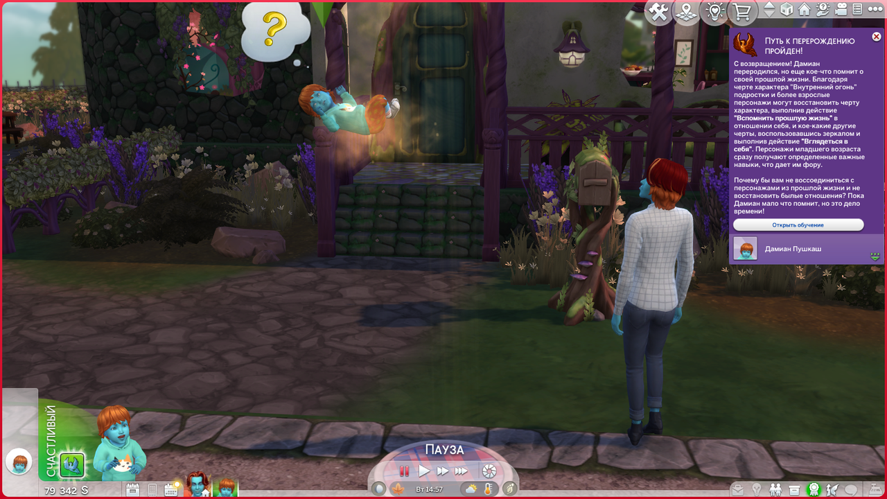 Очень нравится, как усложнили путь души - у симки уже 1 этап ЖЦ пройден и наполовину следующий, выполнен один пункт из списка, а нет даже первого уровня пути души - теперь это реально похоже на какой-то путь, а не просто прогулка до ларька за домом... Х))))
