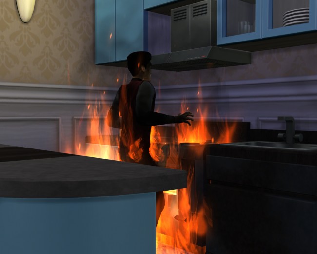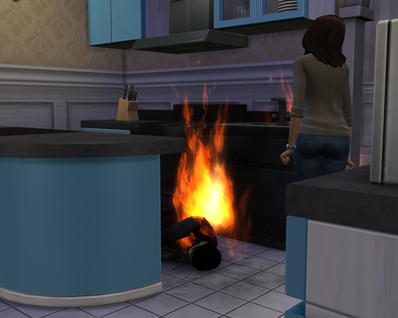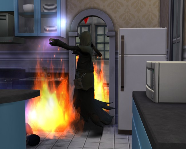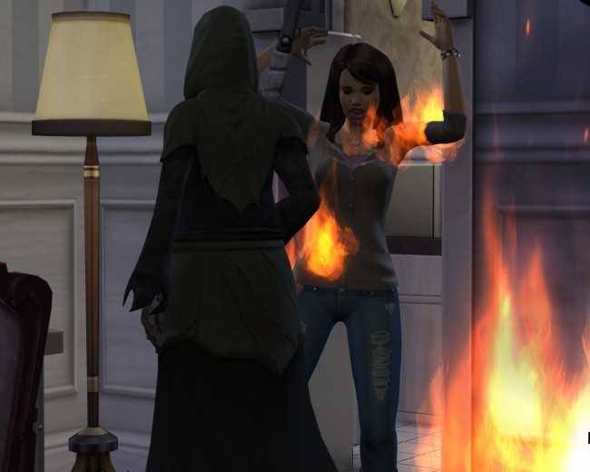 | Смерть в пожаре | Смерть в пожаре | От ребенка и старше | Если в доме случится пожар, а огонь перекинется на персонажа и не будет потушен вовремя, то сим умрет. | Базовая игра |