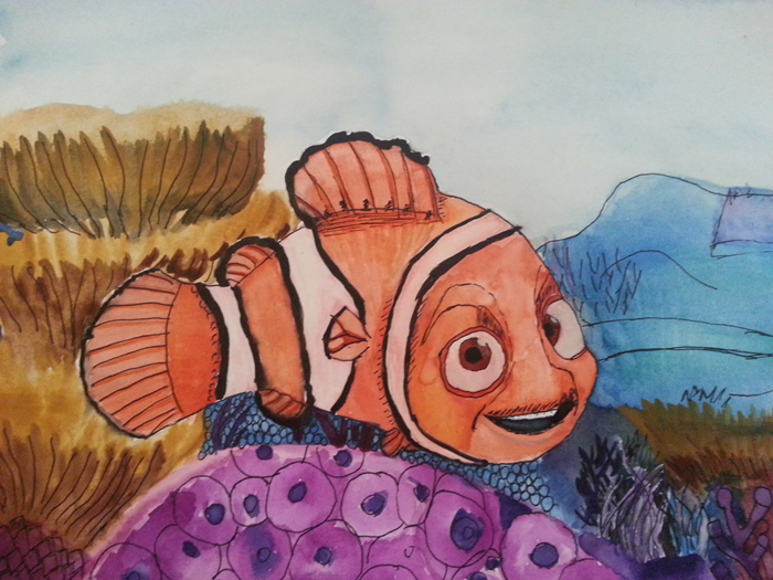 Поединок № 186 - Работа 2. Немо симпатяга))) На первом рисунке Немо словно в пожилом возрасте, из-за этой прорисовки теней и линий гелиевой ручкой.