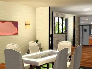 1 этаж- просторная гостиная с двумя зонами отдыха,столовая-кухня,общая ванная.