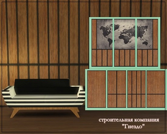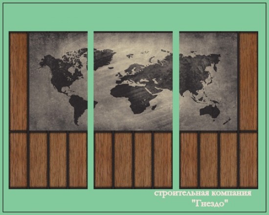 обои - фрески "ДЕРЕВЯННЫЕ ПАНЕЛИ + КАРТА"