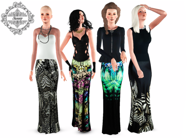 Знаю, не обновлялась я более месяца, все из-за школы, нагрузка большая. Выложу новую работу, не скажу что она потрясающая, супер классная, но и не ужасна. На этот раз обновку я приурочу к открытию блога. Собственно, сама обновка - небольшой набор юбок от Roberto Cavalli. Напоминаю, что для качественного отображения юбок в игре настройки детализации симов должны стоять на максимуме! В архиве один файл с четырьмя вариантами перекраски. Перекрашиваемых каналов и вариантов нет. Меш новый. Подходит для молодых и взрослых симок. Лично мне, несмотря на простоту, юбки нравятся. Смотрим.