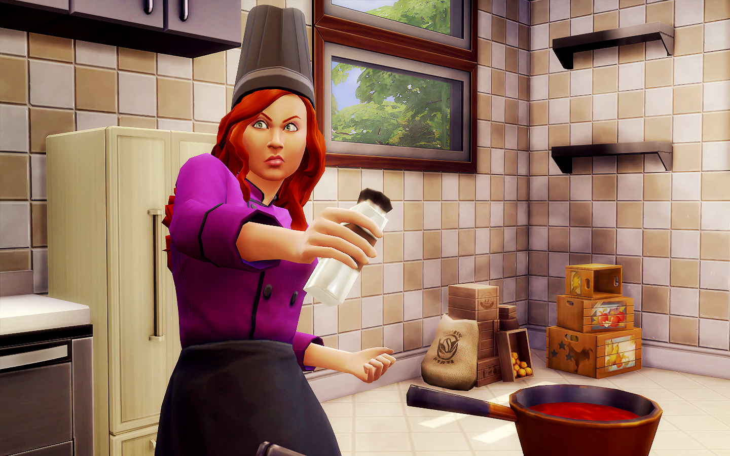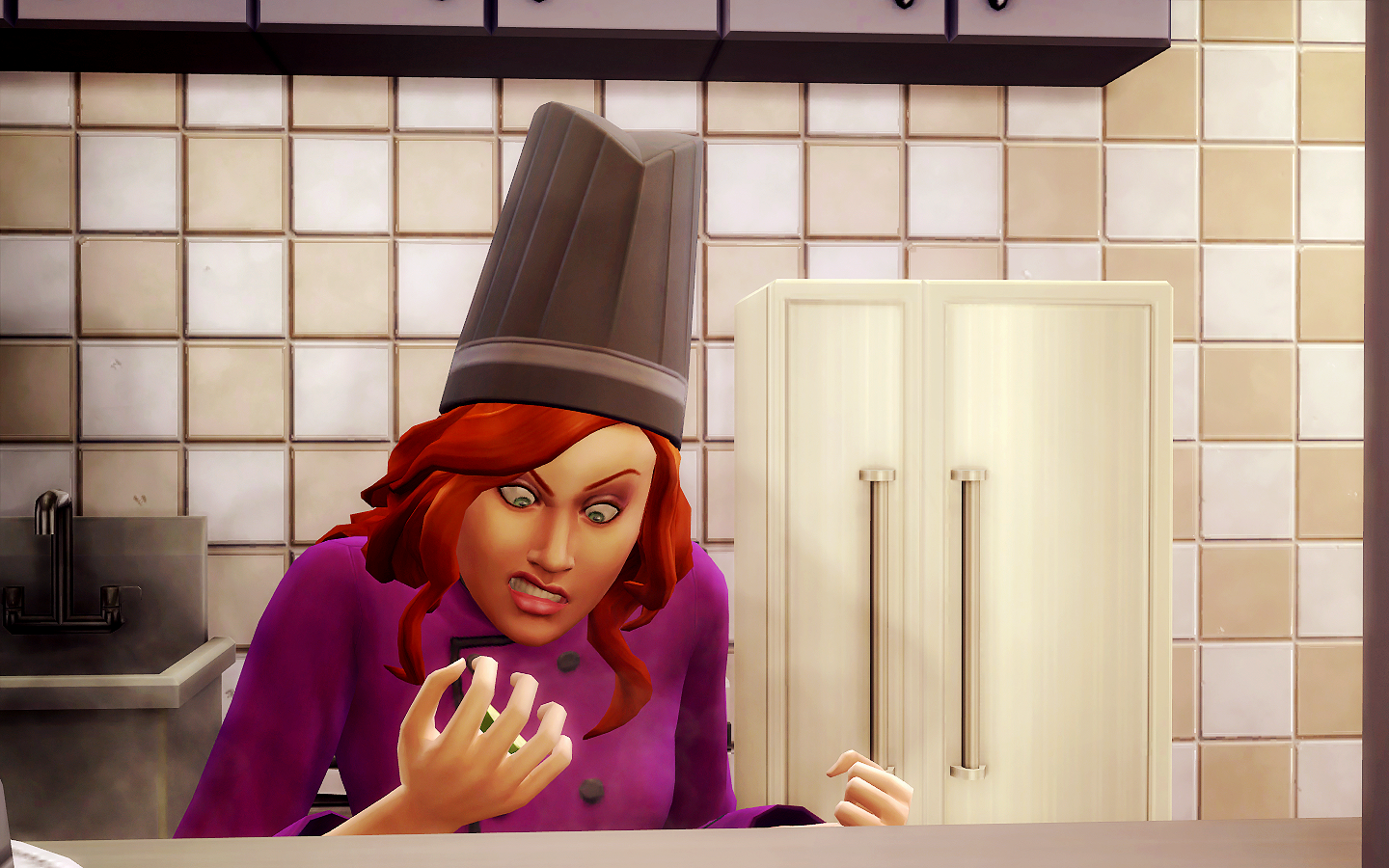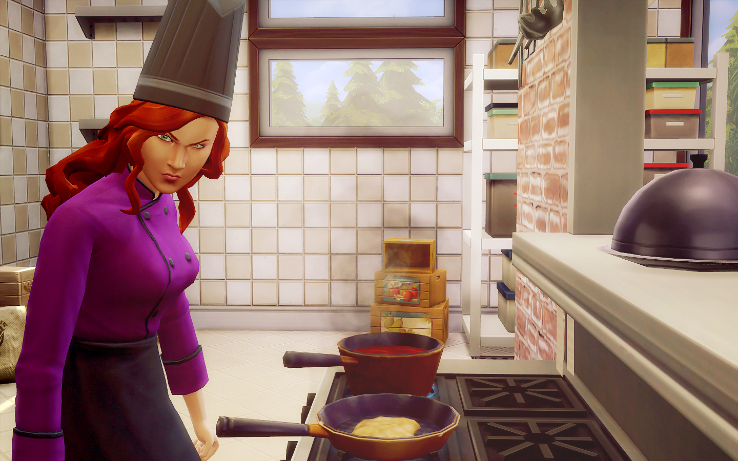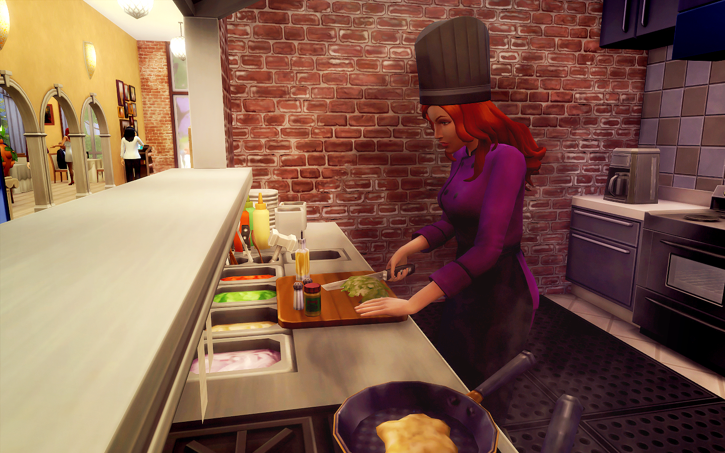 Проверьте свободны ли все нужные проходы в ресторане, попробуйте продать плиту повара и заменить на новую. В случае наличия модов, проверьте, не вызывают ли они конфликты.